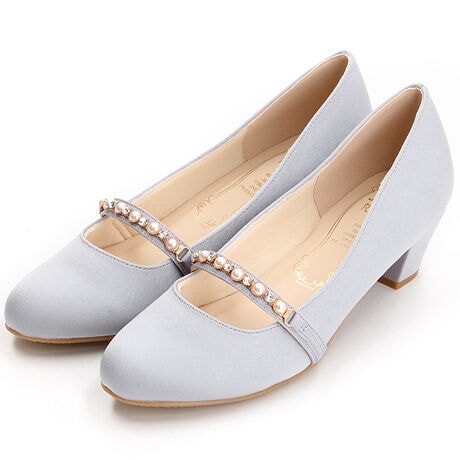 やわらかなラウンドトゥに、上品なパール調ストラップをあしらったエレガントなパンプス。