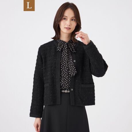 【L】【ウォッシャブル】Fancy Tweedニットカーディガン