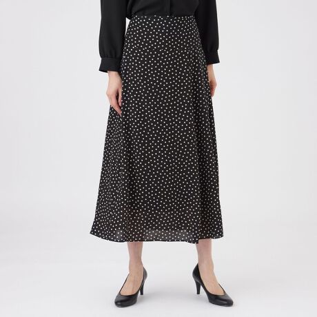 素材の柔らかさが上品な印象で、合わせるトップス次第でオンオフ兼用して頂けます。ヒップ回りはすっきりと仕上げ、フォーマル感と華やかさを意識したやや長めの丈です。程よい広がりのフレアシルエットは、シンプルながらとても使いやすいです。