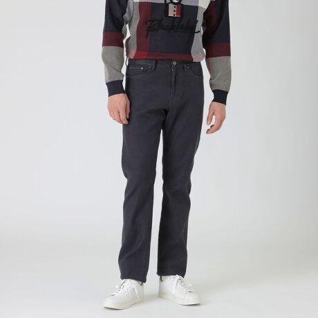 ブランドオリジナルのダブルフェイスデニム素材を使用した、程よいゆとりを持たせながらブラックレーベルらしいラインの美しさに拘ったレギュラーフィットデニム。