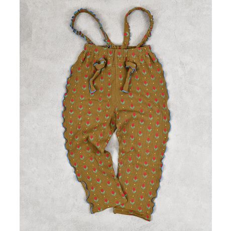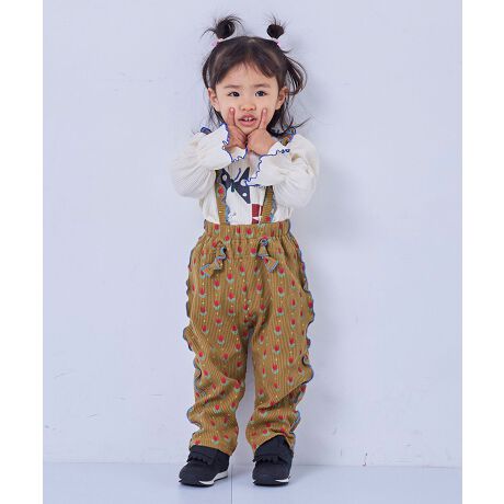 配色メローが映える総柄ワッフルサロペット