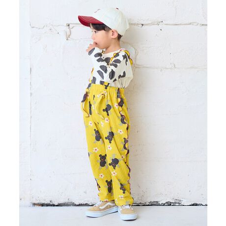 配色メローが映える総柄ワッフルサロペット