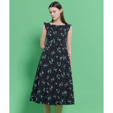 ハリのある上質な素材を使用した、清楚で華やかな印象のドレス。スズランの花をモチーフにした可憐なプリントが全体を彩り、気品漂うフェミニンな雰囲気を引き立てます。ウエスト部分にタックを入れることでシルエットにメリハリが生まれ、スタイルアップ効果も。一枚で主役になる存在感があり、特別なシーンはもちろん、ジャケットやカーディガンを羽織ればデイリーにも取り入れやすい万能な一着です。