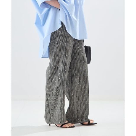 人気のデヴォープリントをレサージュ別注で作成し、リラックス感のあるワイドパンツ。