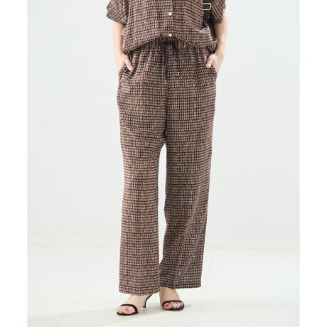 人気のデヴォープリントをレサージュ別注で作成し、リラックス感のあるワイドパンツ。