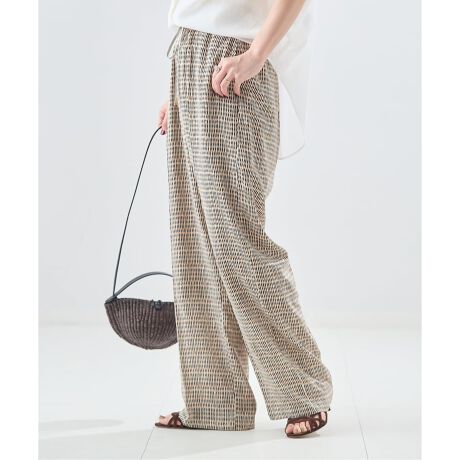 人気のデヴォープリントをレサージュ別注で作成し、リラックス感のあるワイドパンツ。