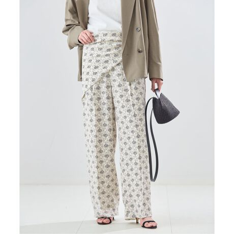 プリントや刺しゅうが一枚で着映えするパンツはシンプルなトップスでも華やかな印象に。