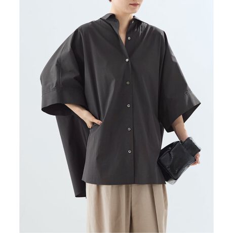 レギュラーカラーできっちりとした見た目にもかかわらず、ゆったりして涼し気なシャツブラウス。