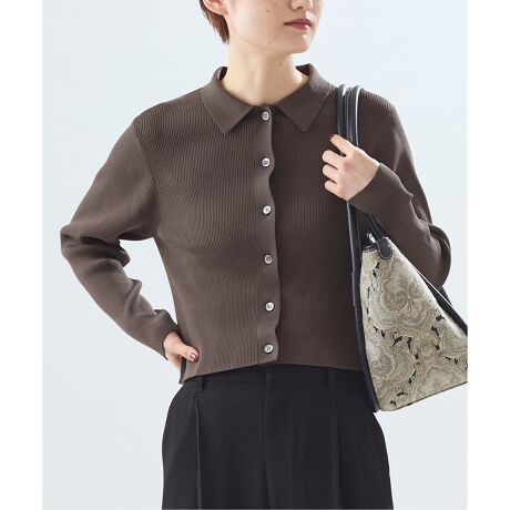 大人の女性にピッタリな襟付きのカーディガンはコンパクトなクロップド丈がポイント。