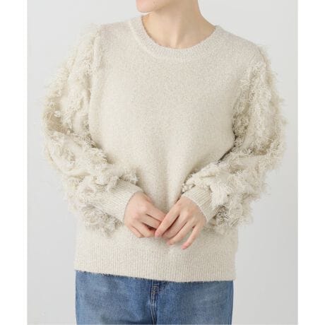 袖部分には立体的なフリンジデザインを施し、シンプルなシルエットに程よいアクセントをプラス。