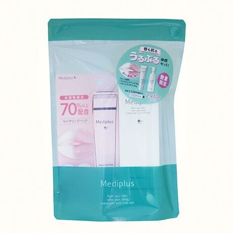 大人気のリペアリップパックとメディプラスゲル45gの数量限定セット。従来のリップケアアイテムとは発想を変え、「くちびるに水分を与えて乾かさない」処方を実現したケア用のリップパックと乾燥にアプローチするオゾン化グリセリンを配合したゲル状美容液を体感いただけます。
