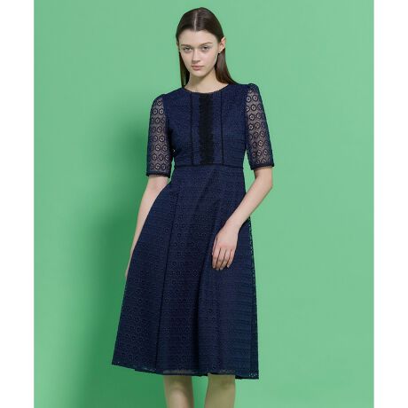 程よい透け感のあるスリーブが軽やかな抜け感を演出し、女性らしいエレガントな雰囲気を引き立てます。フロントには縦のラインを強調するデザインを取り入れ、すっきりとした印象に。ウエストをさりげなくマークする切り替えでスタイルアップを叶えます。