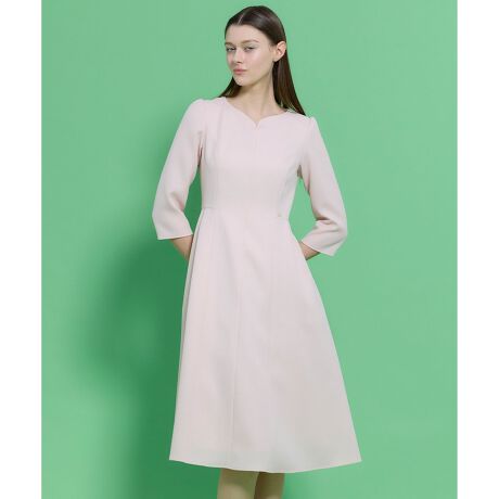 細かな千鳥柄を無地に見える繊細なジャカード織りで表現したTOCCAオリジナル素材のドレス。美しいラインを際立たせるために、計算されたパターンメイキングで立体感を持たせたデザインがポイントです。織りによる陰影がさりげなく柄を浮かび上がらせ、上品で洗練された印象を与えます。