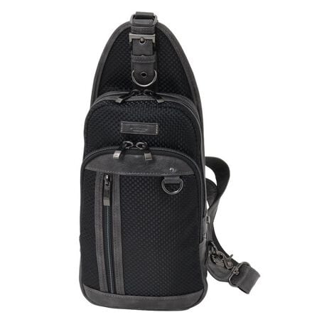 【異素材のメッシュとレザーが上品に調和した、大人のための洗練されたボディバッグ】