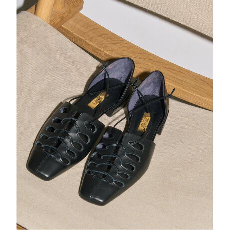 アッパーにカッティングを入れたレースアップデザインのセパレートフラット。