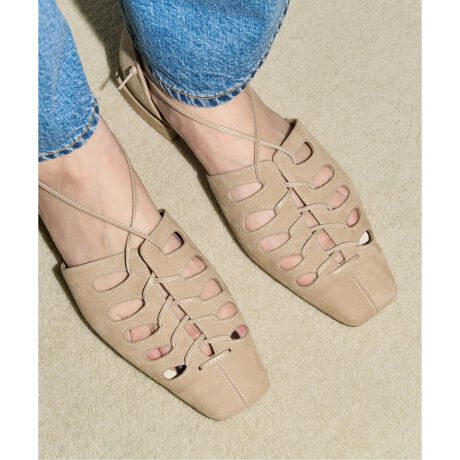 アッパーにカッティングを入れたレースアップデザインのセパレートフラット。