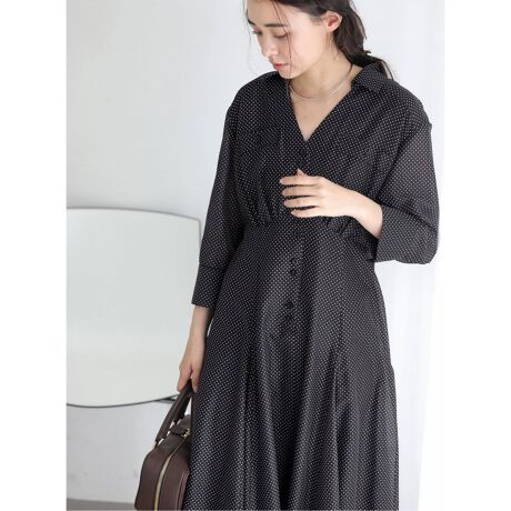 シャツデザインをベースにした、きちんと感と女性らしさを兼ね備えたワンピース。