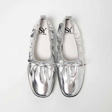 深めの履き口と細いリボンが特徴のバレエシューズ