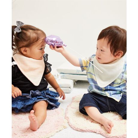 スカーフみたいなデザインが可愛い!リバーシブルで使える、わたあめガーゼスタイ。