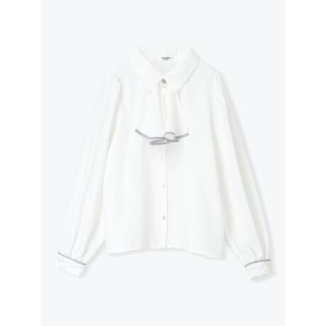 [型番:25550724056]パイピング切り替えがさりげない表情感を演出するブラウス。首元のボウタイは取り外すことができるので、気分やシーンに合わせたスタイリングが可能です。さらりとした軽やかな着心地の素材がポイント。ボトムスにタックインしたメリハリのあるコーディネートがおすすめです。