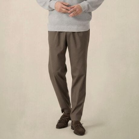 ワンタック入りで腰回りにゆとりを持たせながらもスリムなテーパードシルエットで美脚とリラックスを両立。