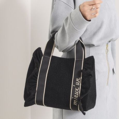 ふんわりとしたフリルをサイドにあしらい、カジュアルながらフェミニンな印象のミニトート。