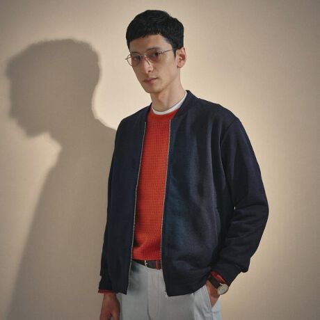 「季節の変わり目に活躍する、国内で作られたオリジナル柄ジャカードブルゾン」