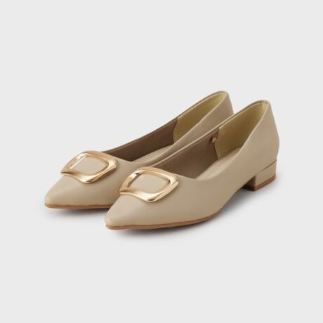 機能性と履き心地の良さにこだわったデザインバックル付きフラットパンプス