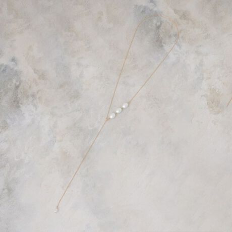 3連のパール調ビーズがとても上品で長さ調節しやすいスライド式ネックレス