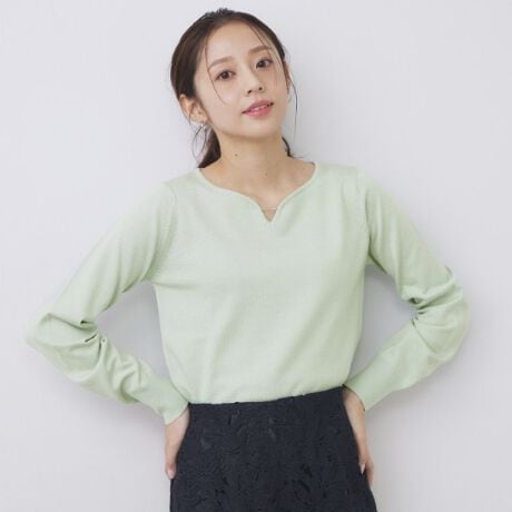 ・袖口と裾はリブ編み仕様で、すっきりとしたシルエット。
