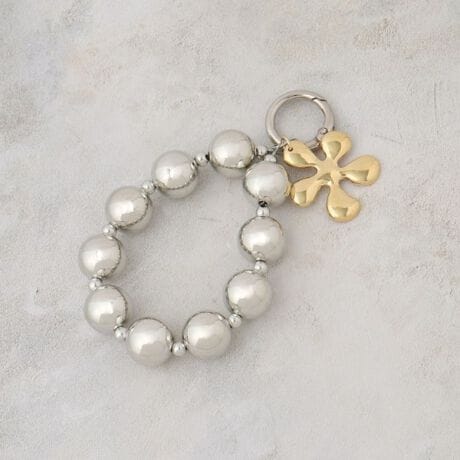 花パーツをあしらったチャームが揺れて、バッグや小物に洗練された遊び心を添えます。