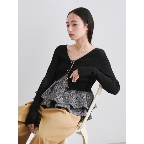 デコルテがきれいに見えるVネックデザインなので、ボタンを留めてプルオーバー風に着るのも素敵です。