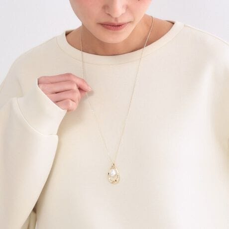 メタルのしずくにフェイクパールを合わせたロングネックレス