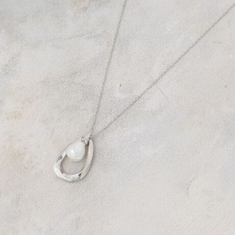 メタルのしずくにフェイクパールを合わせたロングネックレス