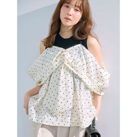 大胆にあしらったリボンライクなツイストディテールも着映えをアシストし、1枚で華やかに。