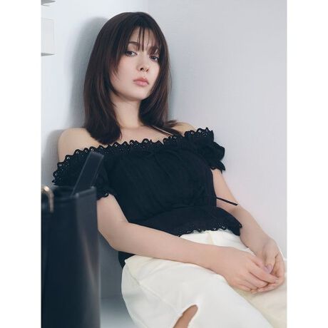 <b>【フリルレースブラウスはオフショルダーにもなる2WAY仕様】</b>