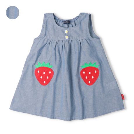 いちごのモチーフがインパクトがあって可愛い!春らしいジャンパースカート。かなり薄手のダンガリー素材なので、春はもちろんインナーを変えて夏も着られます!(薄手で若干透け感があります。)【アイテム】トップス シンプル ガーリー フェミニン カジュアル お洒落 オシャレ かわいい 可愛い 普段着 デイリーウェア お出かけ着 お外着 お外遊び着 子ども こども 女児 女の子 ガールズ キッズ ベビーサイズ トドラーサイズ 幼稚園 保育園 小学校 通園 通学 小学生 2026年春物新作 丸高衣料 ジャンスカ 苺 イチゴ フルーツ 果物 お花 フラワー 青色 ムージョンジョン コットン100% 綿100%
