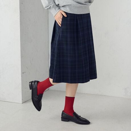 パンプスやサンダルにもソックスコーデが新鮮。