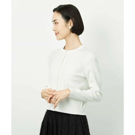 キュプラ混のストレッチ素材を使用し光沢としなやかさが上品な表情のカーディガン。総針編みで程よい厚みを持たせ体のラインを拾いすぎないコンパクトなフィット感に仕上げました。同素材のクルーネックプルオーバーと合わせてアンサンブルとしても着用いただけます。40サイズは限定店舗展開です。