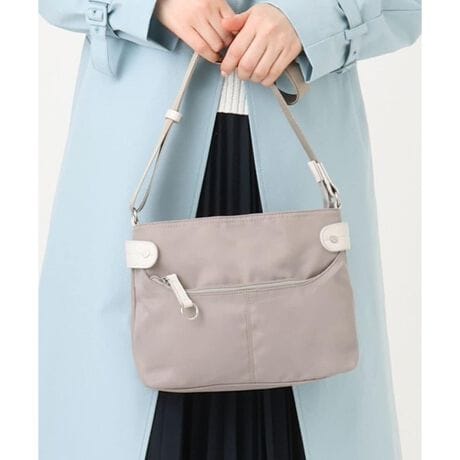 コンパクトなデザインですがポケット収納が充実しており、リップや目薬といった小さめのお荷物から、文庫本まで幅広く入れていただけます。フロントやバックの外ポケットにもファスナーがついているので、サっと取り出したいものを入れても落とす心配がない点が◎