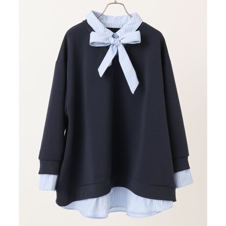 マルイウェブチャネル   /   エウルキューブ   /   トップス   /   スウェット・トレーナー   /   【WEB先行販売】【大きいサイズ】レイヤード風ボウタイトップス