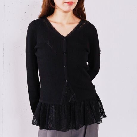 ・レイヤードしやすいレースのタンクとシンプルなニットカーデのSETitem