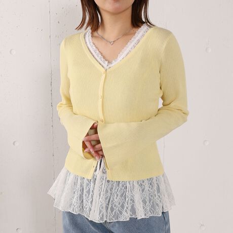 ・レイヤードしやすいレースのタンクとシンプルなニットカーデのSETitem