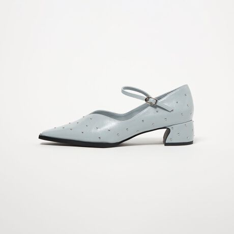 小さなスタッズをアッパーからヒールまでドット柄のように散りばめたパンプス。