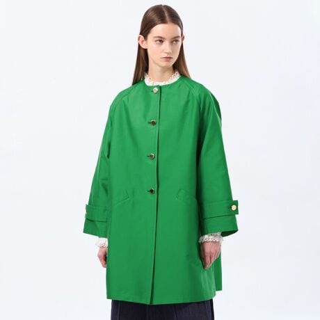圧倒的な人気を誇る優しいAラインが魅力のWELBURY(ウェルベリー)のノーカラーコート。柔らかいフォルムとゆとりのある袖がアイコニックなコートです。フロントのゴールド釦がリュクスな印象に。