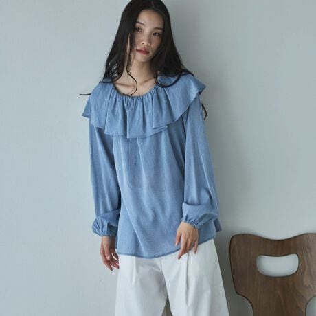 ・ブラウスのような生地が落ち着きを出し程よいフェミニン感に