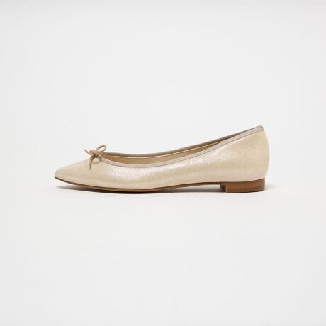 ポインテッドのつま先でシャープな印象のバレエシューズ。