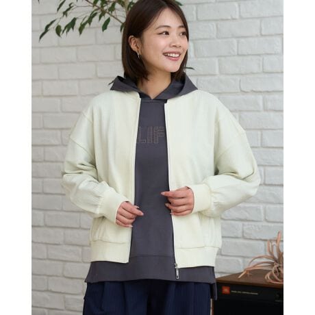 表面変化のある素材を使用したカットソーブルゾン。カーディガン感覚で羽織れる軽さながら、しっかりとした印象に仕上がっています。裾と袖口には交互であしらい、ほどよいフィット感。ジップアップ仕様で着こなしの幅が広がる便利な一枚です。