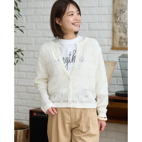 パッチワークしたようなクラフト感のあるクロシェ編みカーディガンです。