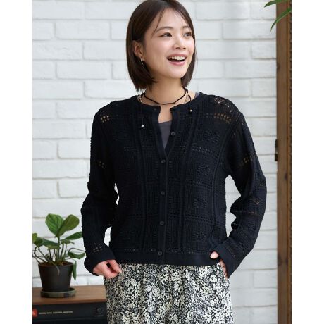 パッチワークしたようなクラフト感のあるクロシェ編みカーディガンです。
